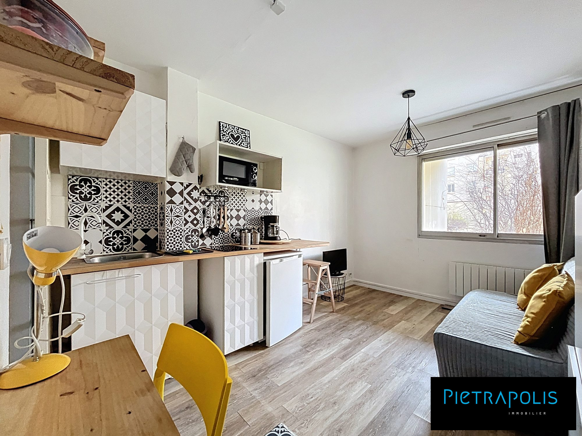 Studio T1 meublé refait à neuf intégralement, tv, mobiliers, machine à laver... situé dans une résidence calme, proche des transports et des commerces, comprenant une pièce de vie avec kitchenette équipée, une salle d'eau avec W.C.