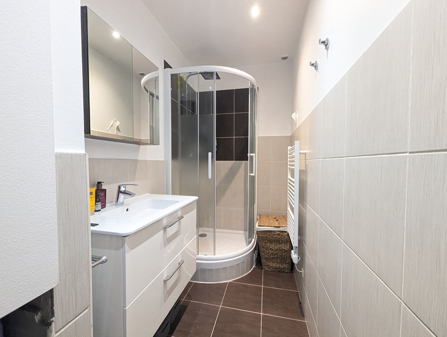 Résidence de standing BBC de 2013, au rez de jardin, ce beau 2/3 pièces de 51m2 comprenant: Un beau séjour donnant sur une cuisine ouverte avec îlot central, un dégagement avec rangements, une belle chambre, un bureau aménagé en chambre, une salle d'eau avec WC. Cet appartement traversant est agrémenté de deux jardins avec terrasses ( donnant sur chambre et séjour) pour une superficie totale de 78m2. Vous disposez également au sous sol de la Résidence d'un parking sécurisé. Aucun travaux à prévoir et prestations de qualités: Volets roulants électriques, fenêtres double vitrage PVC,porte blindée haute sécurité, visiophone Les +: Accès INDIVIDUEL et INDÉPENDANT à l'appartement par son jardin privatif.