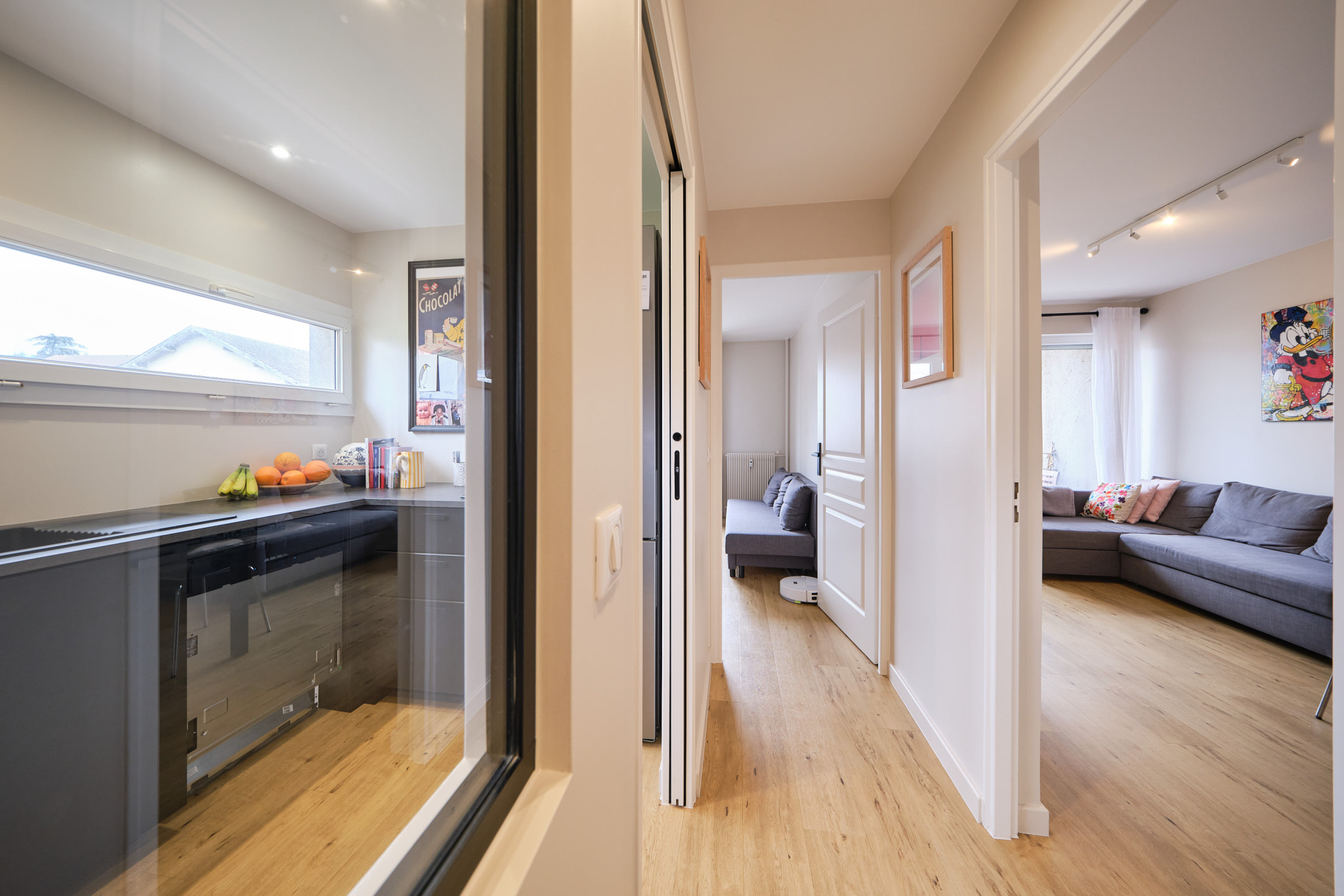 Côté nuit, trois chambres confortables, une salle de bains et un WC indépendant composent un agencement pratique et équilibré. Les ouvertures en bois double vitrage assurent une excellente isolation thermique et phonique, et le chauffage collectif garantit une température constante tout au long de l'année.