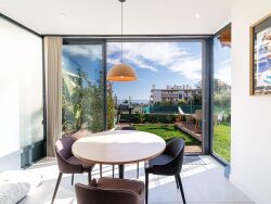 L'appartement se compose d'un séjour lumineux de 35 m² ouvrant sur une agréable terrasse de 15 m² prolongée par un jardin, offrant une très jolie vue mer. La cuisine s'intègre harmonieusement à l'espace de vie, idéal pour un cadre moderne et convivial. L'espace nuit se compose d'une belle chambre donnant sur le jardin et d'une petit chambre / bureau, une salle d'eau contemporaine avec douche à l'italienne et des prestations soignées dans l'ensemble du logement. Entièrement climatisé, l'appartement bénéficie d'un excellent niveau de confort. Une cave complète le bien et une place de stationnement est disponible en location.