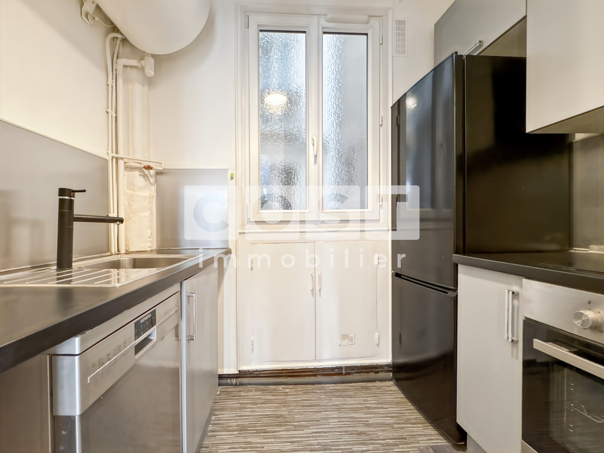 ASNIERES-S/-SEINE - Bourguignons Dans une copropriété de 1930, appartement au 1er étage en bon état général, très bien agencé, lumineux, au calme et sans vis-à-vis offrant entrée, séjour, cuisine aménagée et équipée, chambre, salle d'eau avec wc, cave en sous-sol et box. Local vélos/poussettes au sein de la copropriété. Idéalement situé, à moins de 10 minutes du métro L13 Les Agnettes et à proximité immédiate des commerces.