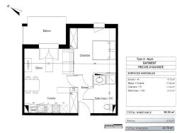 Le logement dispose d'un séjour, une cuisine équipée, une chambre avec placards, une salle d'eau avec douche et un WC (douche au ras du sol, siège rabattable, barres d'appui et de maintien, WC rehaussés), un balcon et une place de parking.