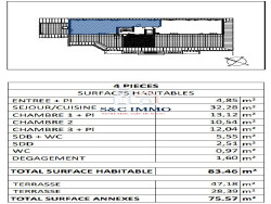 Découvrez ce magnifique appartement T4 neuf, construit en 2027, offrant un espace de vie lumineux et moderne de 83.46 m². Cet appartement de standing comprend 4 pièces, dont 3 chambres spacieuses, une salle de bains et une salle d'eau, ainsi que 2 WC indépendants pour un confort optimal.