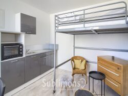 La pièce principale offre un espace de vie optimisé avec coin cuisine et une belle luminosité. Une salle d'eau moderne complète l'aménagement intérieur.