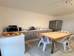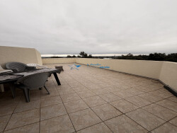 Découvrez une cuisine aménagée et équipée, parfaite pour les chefs en herbe, et profitez d'une vue imprenable sur la mer depuis votre balcon de 5 m² et votre terrasse de 38 m². Les grandes ouvertures en PVC/aluminium laissent entrer la lumière à flots, créant une atmosphère chaleureuse et accueillante.