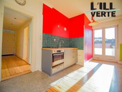 A Bischheim, rue de la Robertsau, à proximité des commerces, des transports et des pistes cyclables, au 1er étage sur 3 d'un petit immeuble de 8 logements, spacieux et lumineux 2 pièces traversant de 60 m².