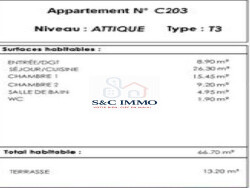 Découvrez ce magnifique appartement T3 de 66.07 m², situé au 2ème étage d'un immeuble moderne construit en 2026. Ce bien allie élégance et fonctionnalité, offrant un cadre de vie idéal pour les familles ou les professionnels en quête de confort et de praticité.