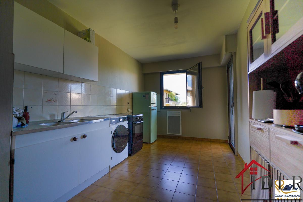 Au niveau de la localisation : 10 min à pied du centre-ville 10 min des axes autoroutiers 30 min de Genève et 45 min de Chamonix Ce T4 situé au 1er étage d'une copropriété sans ascenseur, se compose de la manière suivante : Une entrée avec placard intégré, une salle de bain, un WC indépendant, un cellier, 2 chambres dont une avec placard intégré, une cuisine indépendante, aménagée et équipée, un séjour, et une dernière chambre. En annexe, un garage.