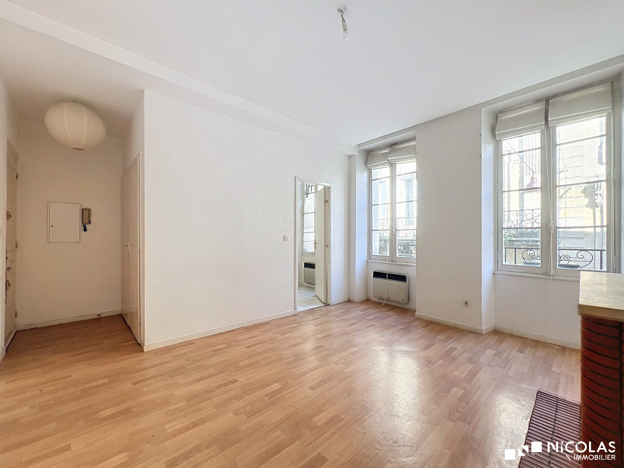 Joli studio situé dans le centre de Bordeaux, rue du Vieux Marché, au 1e étage d'un immeuble en pierre.