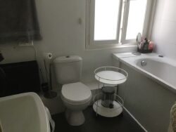 La chambre, lumineuse, est installée en duplex. La salle de bains est équipée d'une fenêtre, d'une baignoire et est assez spacieuse pour accueillir les wc. Une cave est également incluse pour ranger vos affaires.