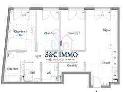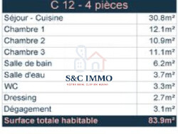 Imaginez-vous dans ce spacieux appartement baigné de lumière, où chaque pièce a été conçue pour votre bien-être. Les trois chambres, dont une suite parentale, vous offriront des moments de détente et de repos. La salle de bains moderne et le WC séparé complètent ce tableau de vie harmonieuse.