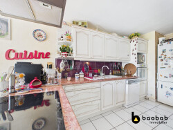 Descriptif : Hall d'entrée, cuisine aménagée et équipée, séjour, salle de bains, W.C buanderie séparés et 3 chambres. Garage de 15m2 en sous-sol et une cave/atelier de 18m2 .