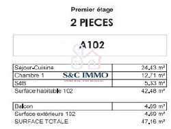 Découvrez ce magnifique appartement T2 de 42,48 m², niché au 1er étage d'une résidence de grand standing, construite en 2028. Ce havre de paix allie élégance et fonctionnalité, offrant un cadre de vie exceptionnel pour ceux qui recherchent le luxe et le confort.