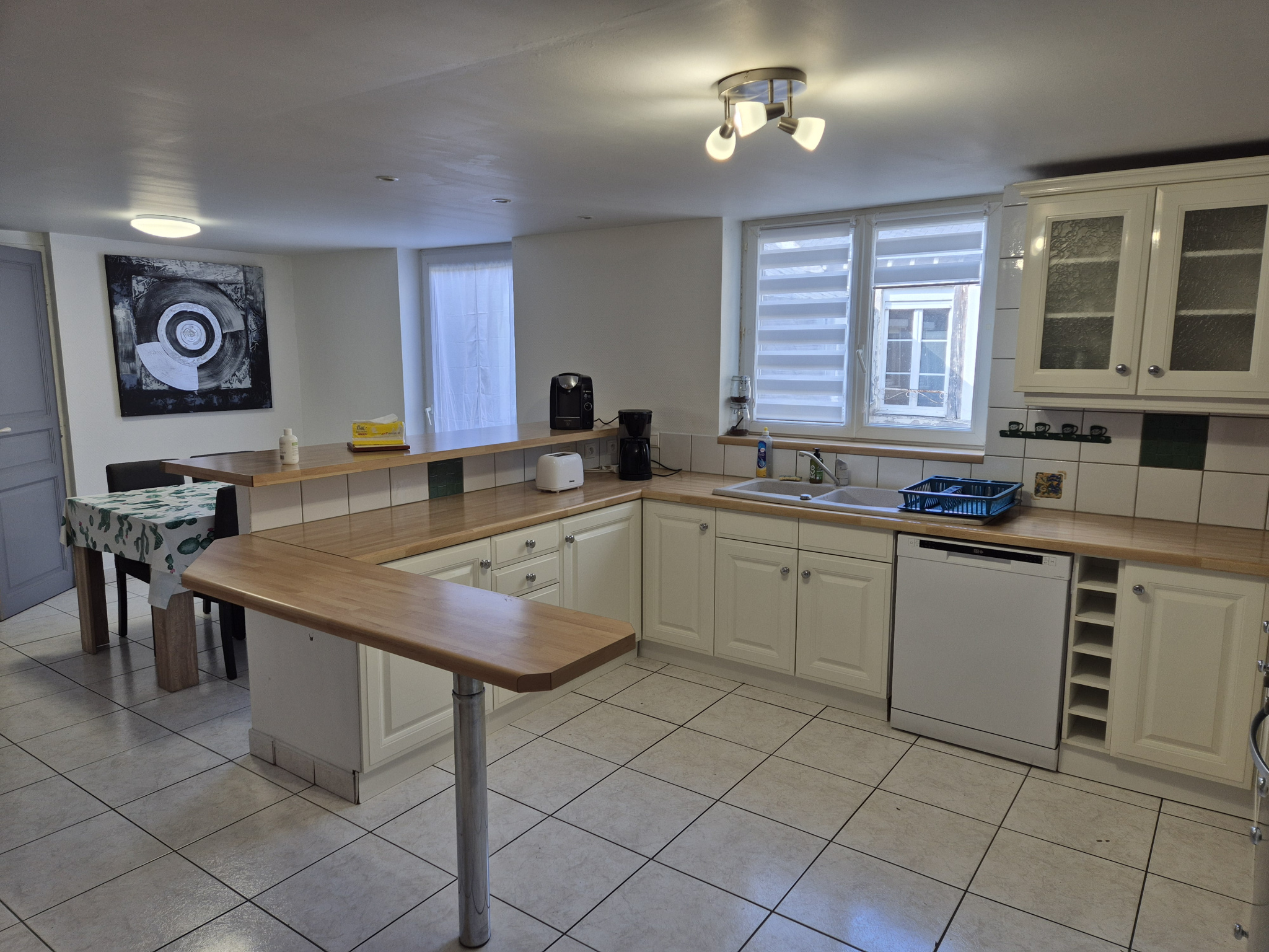 D'une vaste entrée, d'un très beau salon - séjour d'environ 55 m², d'une cuisine équipée de qualité, d'une arrière cuisine, d'une buanderie très pratique, d'un WC indépendant, d'une grande salle de bains avec baignoire et de 3 chambres spacieuses.
