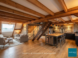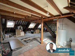 Ce bien comprend un plateau brut de 54 m², prêt à être aménagé et repensé à votre guise. L'étage supérieur offre un palier, lequel distribue deux pièces mansardées de 4.2 et 5.1 m².