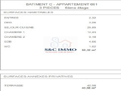 Découvrez ce magnifique appartement T3 de 59 m², niché au 6ème étage d'une résidence de grand standing construite en 2028. Ce havre de luxe et de prestige vous offre une terrasse de 40 m², idéale pour des moments de détente en plein air.