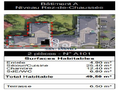Découvrez ce magnifique appartement T2 neuf, prêt à vous accueillir dès 2026. Avec ses 49.50 m² de surface habitable, cet appartement allie modernité et confort pour une vie quotidienne agréable et lumineuse.