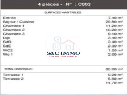 Avec ses 4 pièces spacieuses, dont 3 chambres confortables, cet appartement offre un espace de vie généreux. Les 2 salles de bains et la salle d'eau, ainsi que les 2 WC, garantissent un confort optimal pour toute la famille. La cuisine ouverte sur le salon crée une atmosphère conviviale, parfaite pour les moments en famille ou entre amis.