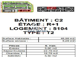 Découvrez ce magnifique appartement T2 neuf, situé au 1er étage, qui allie modernité et confort. Construit en 2026, cet appartement de 45.90 m² offre une pièce de vie spacieuse et lumineuse, une chambre confortable, une salle de bains élégante et des WC séparés. Profitez d'un balcon de 5.20 m² pour des moments de détente en plein air.