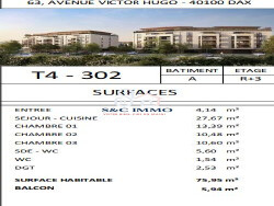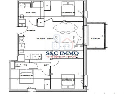 Avec ses 3 chambres confortables, cet appartement vous offre tout l'espace nécessaire pour créer un nid douillet. La salle d'eau moderne et le WC indépendant garantissent intimité et praticité au quotidien. Le balcon de 5.94 m² est un véritable atout, parfait pour profiter des doux moments en plein air, que ce soit pour un petit-déjeuner matinal ou un apéritif en soirée.