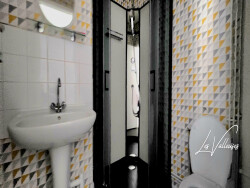 Il se compose d'une entrée, d'une salle de douche avec WC, d'un espace bureau, ainsi que d'une pièce de vie avec coin cuisine ouvert.