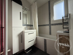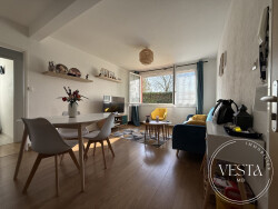 Appartement composé d'un bel espace de vie avec cuisine aménagée équipée avec cellier/buanderie, un dégagement avec rangements, deux chambres, toilettes séparés et salle de bains.
