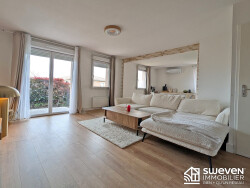 L'entrée avec rangements ouvre sur un séjour lumineux d'environ 33 m² avec cuisine ouverte aménagée et entièrement équipée, formant un espace de vie confortable et fonctionnel. Cet ensemble se prolonge par une terrasse intime permettant de profiter d'un extérieur au quotidien, à l'abri des regards.