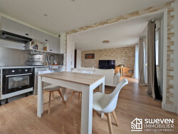 L'entrée avec rangements ouvre sur un séjour lumineux d'environ 33 m² avec cuisine ouverte aménagée et entièrement équipée, formant un espace de vie confortable et fonctionnel. Cet ensemble se prolonge par une terrasse intime permettant de profiter d'un extérieur au quotidien, à l'abri des regards.