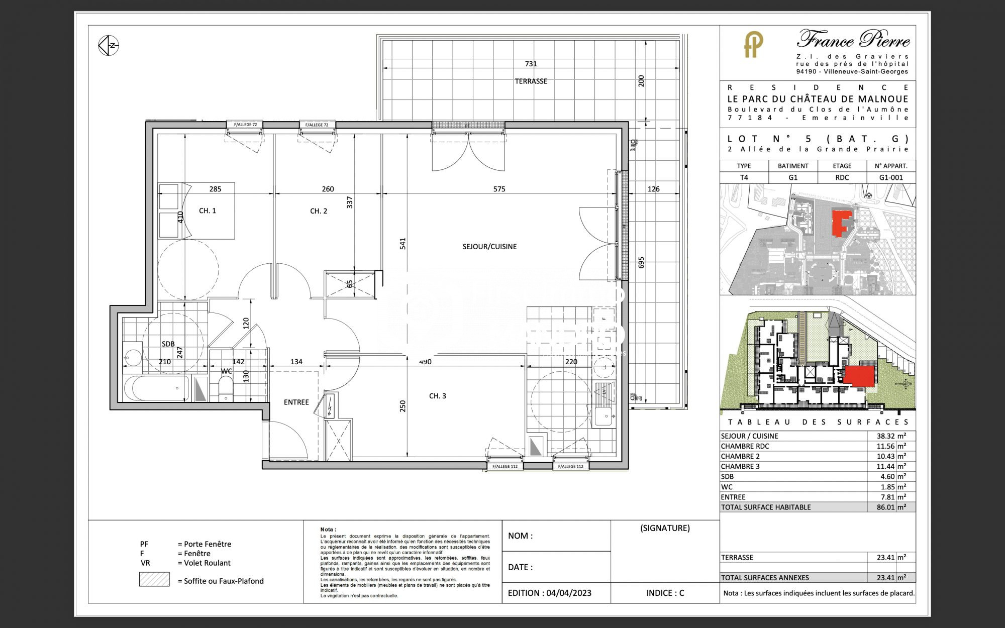 ? DERNIÈRE OPPORTUNITÉ T4 neuf dans un domaine d'exception à Émerainville ?Installez-vous dans un domaine unique mêlant patrimoine et architecture contemporaine, sur la parcelle historique du Château de Malnoue entièrement rénové, et profitez d'un cadre de vie aussi rare que recherché.Au sein d'un immeuble neuf construit dans le prolongement du château, découvrez ce superbe appartement T4 déjà livré et habitable immédiatement, tout en bénéficiant de tous les avantages du neuf.Avec ses 71 m² optimisés, ce logement offre un confort moderne et lumineux, complété par un atout absolument exceptionnel : un jardin de 18m² ainsi que deux terrrasses de 9 et 12 m2, véritable pièce en plus, idéale pour créer un espace extérieur digne d'une maison.? Les avantages clés :Appartement neuf, jamais occupéDisponibilité immédiateFrais de notaire réduitsÉligible au PTZ pour les primo-accédantsRésidence contemporaine au sein d'un site patrimonial rareEnvironnement calme, verdoyant et sécuriséQue ce soit pour votre premier achat, votre résidence principale ou un investissement patrimonial de standing, ce bien réunit prestige du lieu, modernité des prestations et conditions financières ultra avantageuses.? Un domaine historique réinventé, un appartement neuf, une terrasse exceptionnelle.Dernière opportunité bien unique sur le secteur !