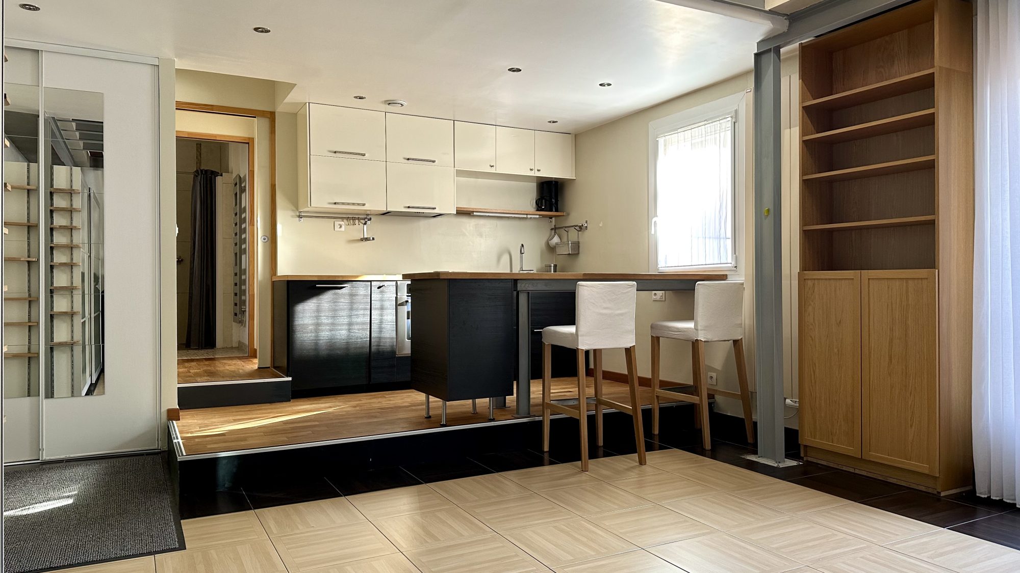 Etretat Centre ville - bel emplacement pour cet appartement T2 en bon état. Il se compose d'une cuisine équipée séparée, séjour/salon avec cheminée donnant sur un balcon exposé Est, une grande chambre avec dressing et salle de douche avec WC.