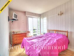 Vue sur verdure, fenêtres en double vitrage, volets roulants électriques, parquet au sol, bon agencement, chauffage individuel au gaz.