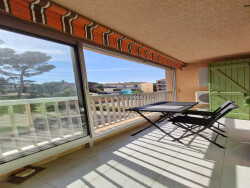 Proche plage et commerces T2 de 24.75m² carrez + 7m² de loggia ( 31.75m² habitable ) situé au 1er étage avec ascenseur, composé d'un espace séjour, d'une cuisine, d'une chambre, d'une salle d'eau et d'un WC. Une loggia de 7m² donnant sur le séjour et la chambre. T2 climatisé, place de parking privative