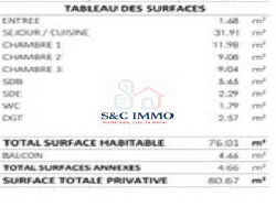 Imaginez-vous dans un salon spacieux, ouvrant sur une cuisine équipée et moderne, parfaite pour les repas en famille ou les dîners entre amis. Les trois chambres, dont une suite parentale, offrent un havre de paix et de tranquillité. La salle de bains, élégante et fonctionnelle, complète ce cadre de vie agréable.