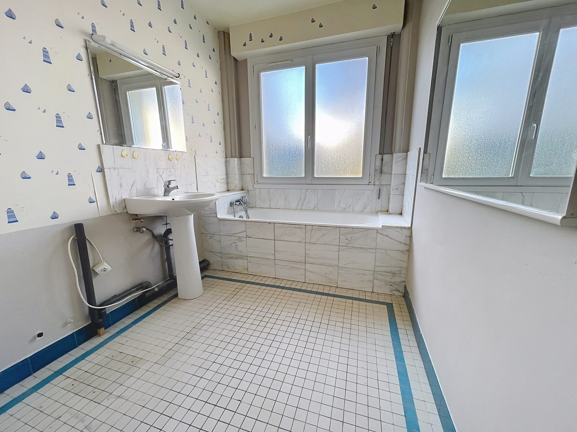 A 300 m du centre-ville et des écoles, 12 minutes de la gare, 3 pièces de 56,50 m² comprenant une entrée avec placard, un séjour, deux chambres, une salle de bains, un WC, une grande cave.