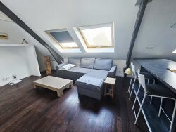 Appartement atypique, en duplex, de 90 m2 au sol et 54 m2 loi carrez, situé au 1er étage d'une petite copropriété. Il dispose d'une entrée sur l'espace séjour, une cuisine aménagée et équipée ouverte, deux chambres dont une avec dressing, une salle de bains avec WC.
