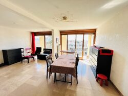 Le hall d'entrée dessert la cuisine, entièrement équipée et spacieuse, son séjour tout aussi spacieux et lumineux ayant un accès au balcon, 3 belles chambres avec chacune également un accès au balcon, une salle de bain avec douche, lavabo et WC séparés. De grands placards de rangement disponible dans les chambres et le hall d'entrée. Le mobilier peut rester ! Garage compris dans le prix en sous-sol.