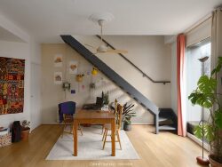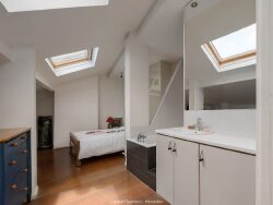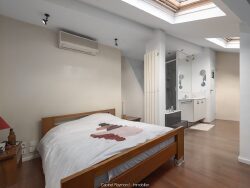 Au 3ème et dernier étage sans ascenseur d'un immeuble construit en 1951, un appartement climatisé, traversant, de type T2 en duplex d'une superficie au sol d'environ 90 m2 (70 m2 carrez) composé d'un grand séjour ouvert à l'Est sur balcon sans vis à vis, cuisine indépendante à l'Ouest, buanderie, toilette et à l'étage, d'une chambre mansardée avec salle de bain, douche et toilette indépendant. Cave en sous-sol - Exclusif -