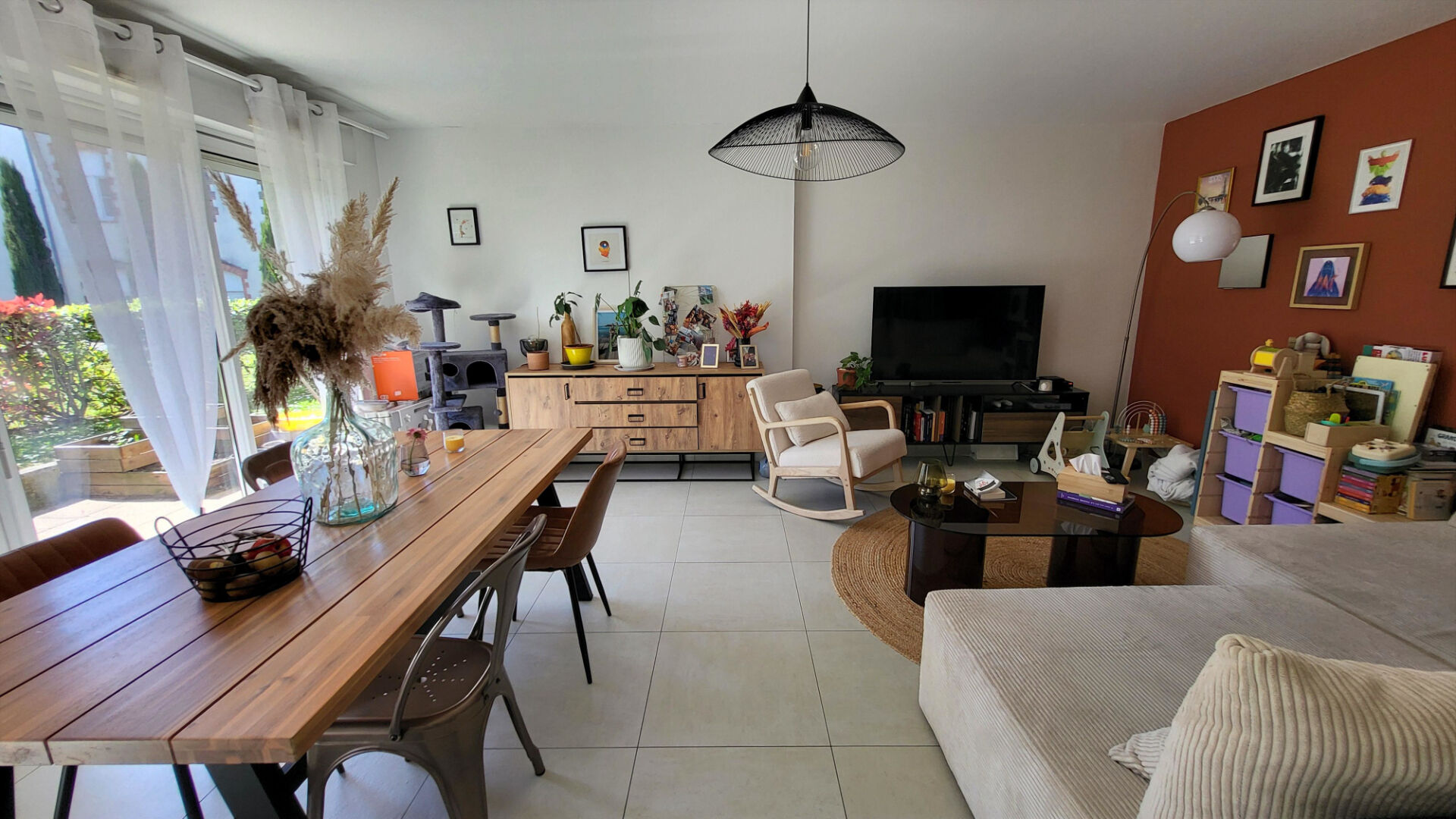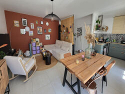 Niveau principal l'espace de vie Vous entrez dans un séjour baigné de lumière, prolongé par une terrasse privative qui devient, dès les beaux jours, votre pièce à vivre préférée. La cuisine aménagée et équipée, ouverte sur le séjour par un bar convivial, invite à recevoir. À ce niveau également : une chambre spacieuse avec dressing, une salle d'eau et un WC séparé. Tout est de plain-pied pour le quotidien.