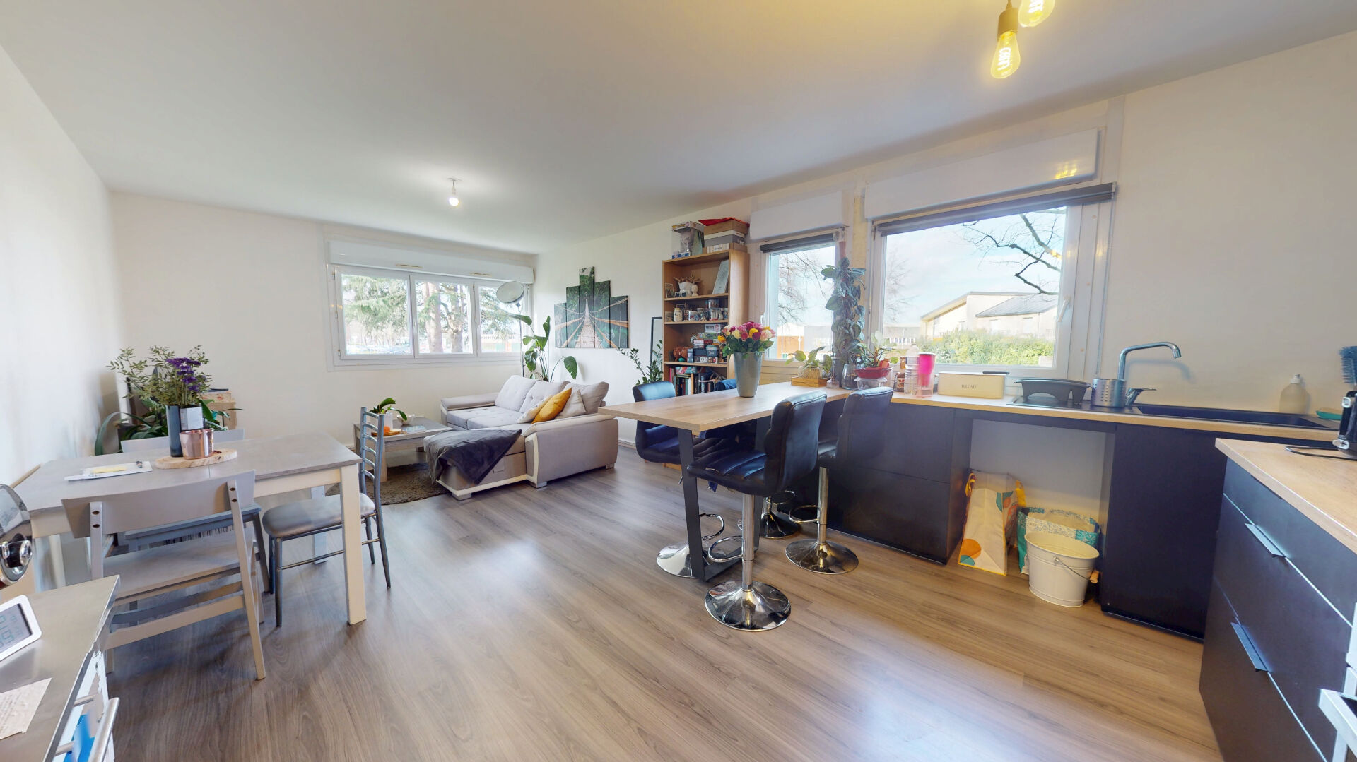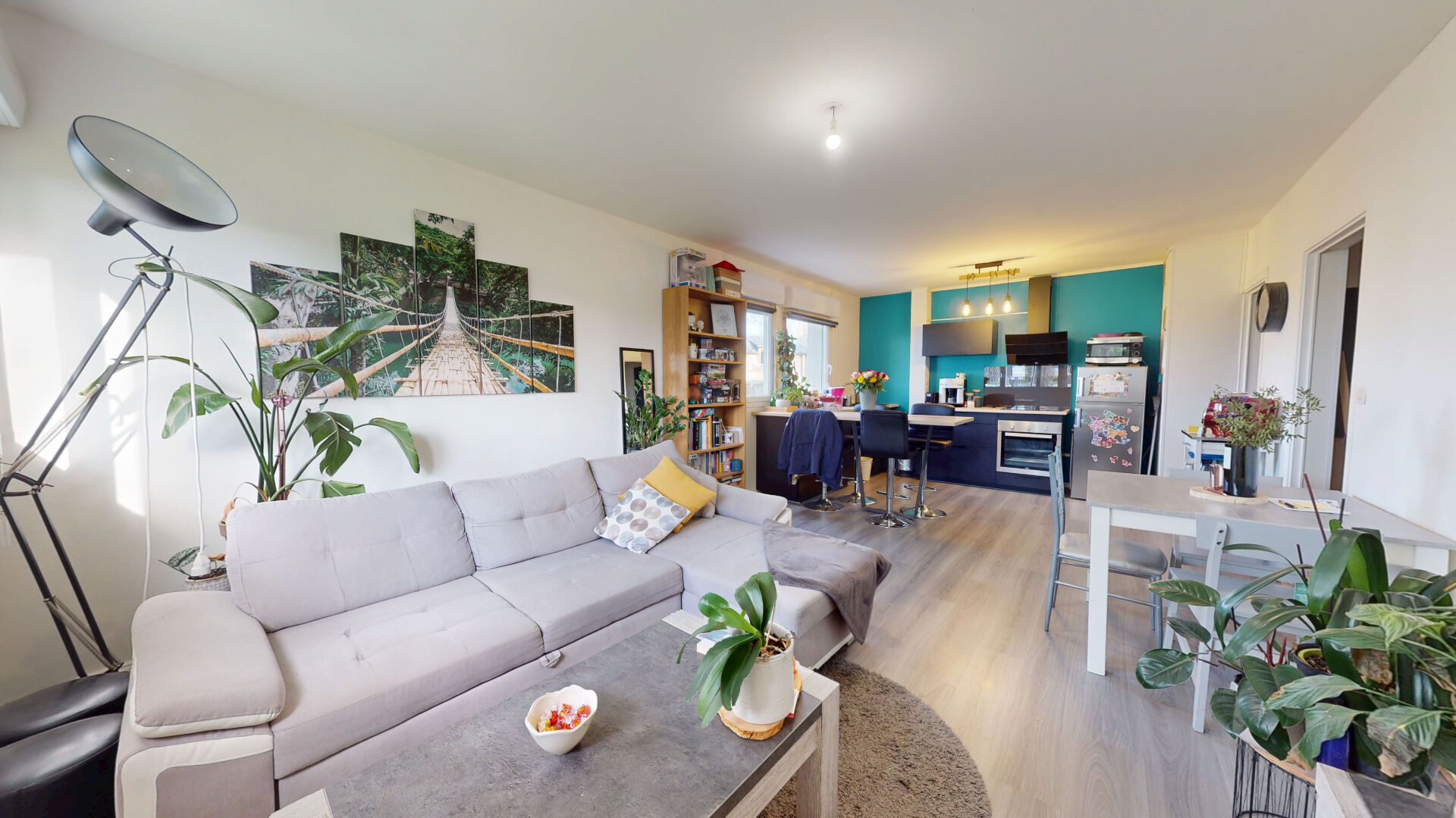 Une 3ème chambre peut être envisagée en cloisonnant une partie du salon.