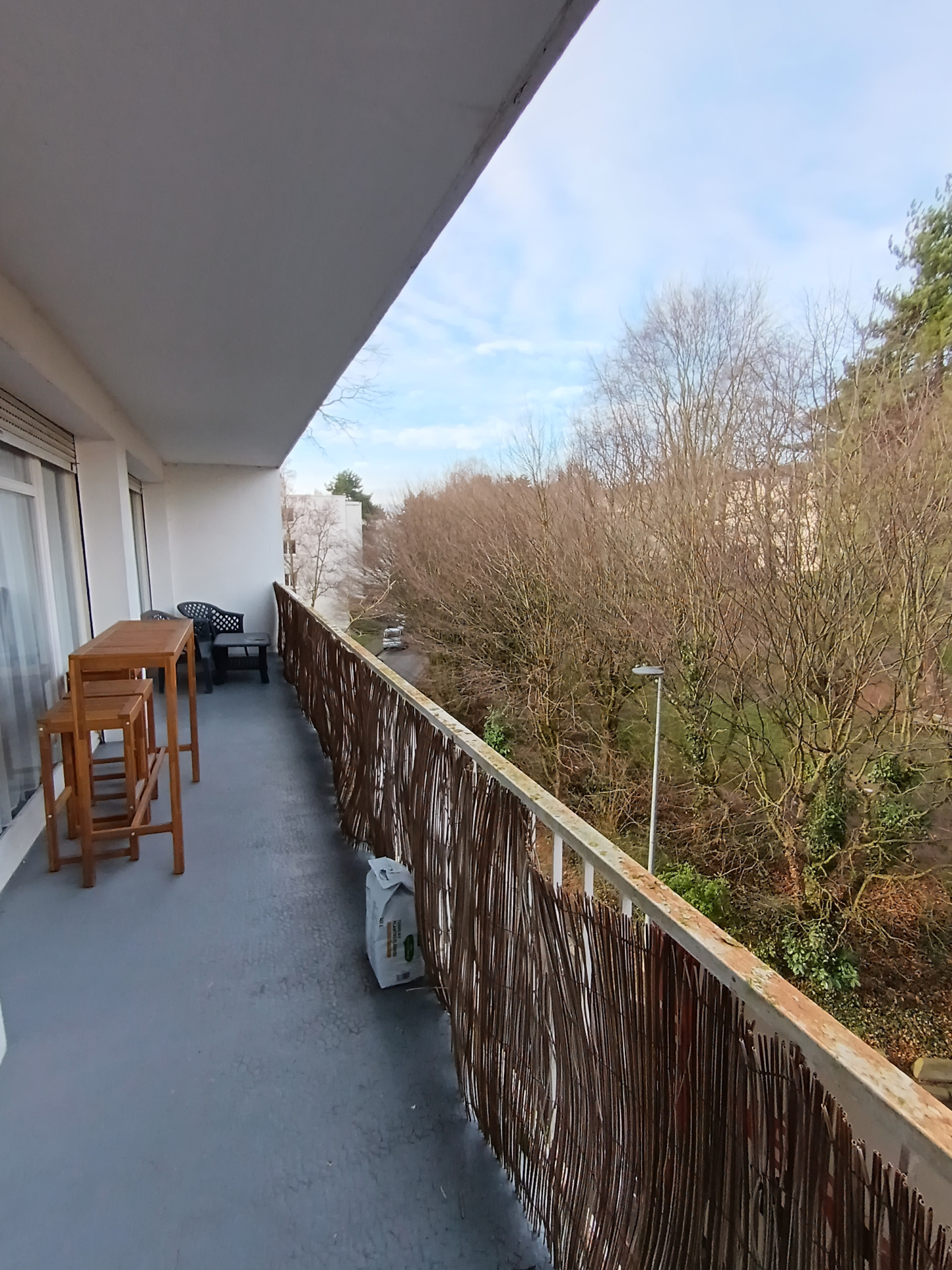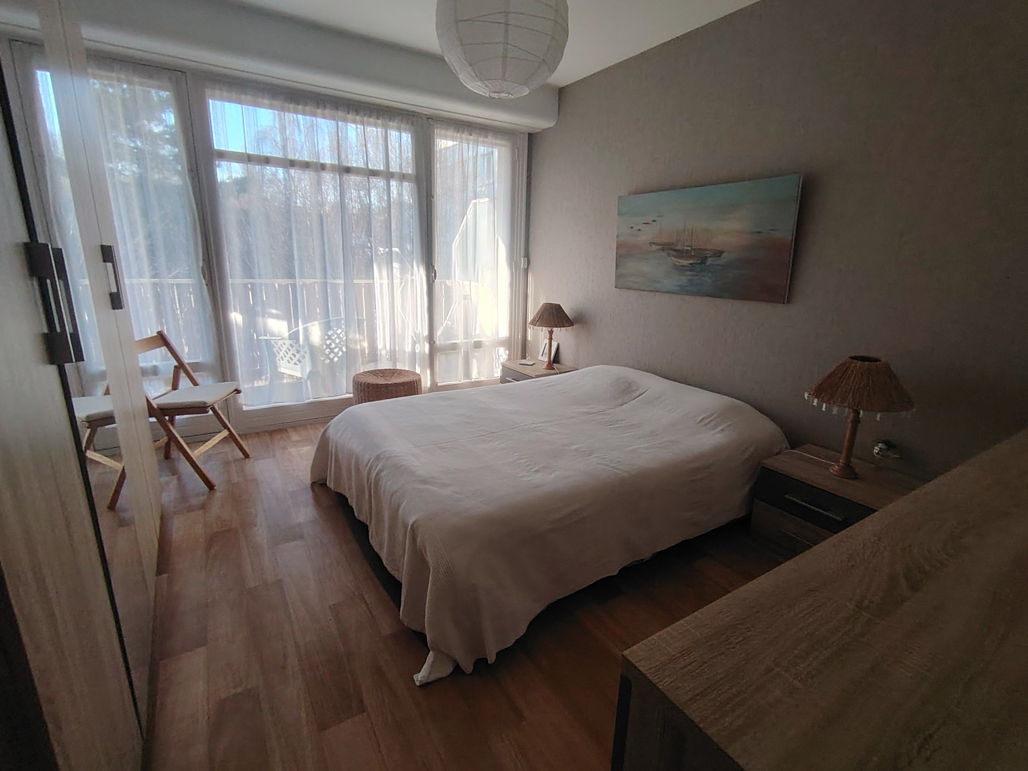 Un balcon est accessible depuis le salon et l'une des chambres.