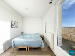 Il se compose d'une entrée desservant d'un côté un espace comprenant deux chambres et une salle de bains, et d'un autre un WC, une chambre avec salle d'eau attenante et un accès à la terrasse, ainsi qu'un bel espace de vie traversant avec cuisine ouverte équipée et aménagée de 28 m².