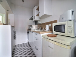 Le séjour de 16 m² est un véritable havre de paix, baigné de lumière naturelle. La cuisine américaine, parfaitement aménagée et équipée, se fond dans l'espace de vie, offrant une sensation d'ouverture et de convivialité.