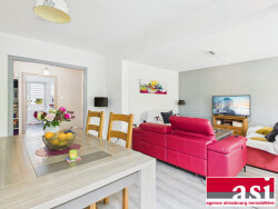 Secteur calme, environnent boisé - 57 Domaine de l'Ile - ILLKIRCH. Au 3ème étage d'une copropriété avec ascenseur, nous proposons un agréable appartement 4 pièces d'une surface de 102 m², il est composé d'une vaste entrée de 13 m², une cuisine séparée de 9 m² avec une loggia de 4 m², un salon séjour de 32 m² donnant accès à une terrasse de 6 m², 3 belles chambres (13,99 m², 12,49 m² et 12,29 m²), une salle de bains, un WC séparé. Chauffage au gaz, fenêtres PVC.