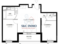 Plongez dans un espace de vie généreux de 60,70 m², soigneusement agencé pour allier fonctionnalité et esthétisme. Votre salon spacieux, baigné de lumière naturelle grâce à de grandes baies vitrées, s'ouvre sur un balcon de 6,40 m², votre terrasse privée où vous pourrez savourer vos petits-déjeuners en contemplant la ville ou vous détendre après une longue journée de travail.