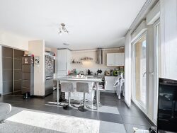 Description du bien : Un hall d'entrée avec rangements Un espace salon-séjour lumineux, ouvrant directement sur une agréable terrasse de 15 m² Une cuisine moderne, entièrement équipée Une salle de bain avec meuble vasque, miroir, douche, sèche-serviettes et WC Une grande chambre avec placard intégré Un garage fermé en sous-sol et une cave complètent ce bien