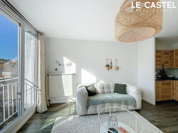 Le logement se compose d'un séjour lumineux avec cuisine ouverte équipée, créant un espace de vie fluide et agréable. La vue dégagée apporte de la lumière et une vraie sensation d'ouverture.