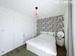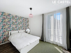 La chambre, confortable et lumineuse, dispose d'un placard intégré. L'appartement est équipé de double vitrage PVC, garantissant un bon confort au quotidien.