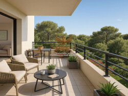 T3 avec superbe terrasse La Ciotat Présentation Premium À quelques minutes de la gare et du port, au coeur d'un secteur recherché et arboré, découvrez un appartement rare dans un environnement intimiste composé de petits bâtiments d'un étage seulement, entourés d'espaces verts et de pins parasols. L'ensemble a été pensé comme un lieu de vie paisible, au plus près de la nature, tout en restant proche de tous les commerces, écoles et axes principaux. L'APPARTEMENT Ce T3 moderne et lumineux se distingue par une distribution optimisée et des volumes généreux.Le séjour s'ouvre sur une superbe terrasse plein ciel, parfaitement orientée pour capter la lumière du matin au soir idéale pour recevoir, se détendre ou créer un véritable espace extérieur à vivre. L'espace nuit accueille deux chambres confortables, une salle d'eau contemporaine et des espaces de rangements. LES ATOUTS Grande terrasse rectangulaire, intime et fonctionnelle Architecture élégante, matériaux naturels, façades bois & pierre Résidence intimiste, sécurisée, stationnements privatifs Prestations haut de gamme :carrelage 60×60, faïence grand format, douche extra-plate, WC suspendus, sèche-serviettes, volets roulants électriques, climatisation dans le séjour Excellente orientation, luminosité continue Normes RT2012, confort thermique Séparatifs de terrasses, intimité préservée UN EMPLACEMENT PRIVILÉGIÉ 2 km des plages 10 minutes du port et du centre-ville 5 minutes des commerces et autoroutes Accès direct à la voie douce permettant de rejoindre plages et centre-ville à pied ou à vélo UNE QUALITÉ DE VIE RARE Un appartement pensé pour ceux qui recherchent : la tranquillité, un extérieur d'exception, un cadre arboré naturel, la qualité et le confort du neuf.