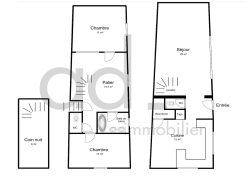 Elle comprend un séjour, une salle à manger avec une cuisine ouverte au rez-de-chaussée une buanderie et un WC. À l'étage, un grand palier avec un espace bureau, deux chambres dont une avec mezzanine et avec un accès sur une terrasse. Une salle de bains, un coin nuit sous comble pouvant servir de 3ème chambre et un WC indépendant.