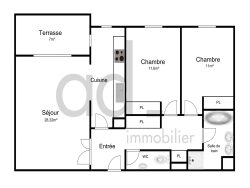 Il se compose d'un séjour avec cuisine aménagée de 28 m² donnant sur un balcon. Un coin nuit composé de deux chambres, une salle de bains avec douche et baignoire, un WC séparé. De nombreux rangements présents dans l'appartement.